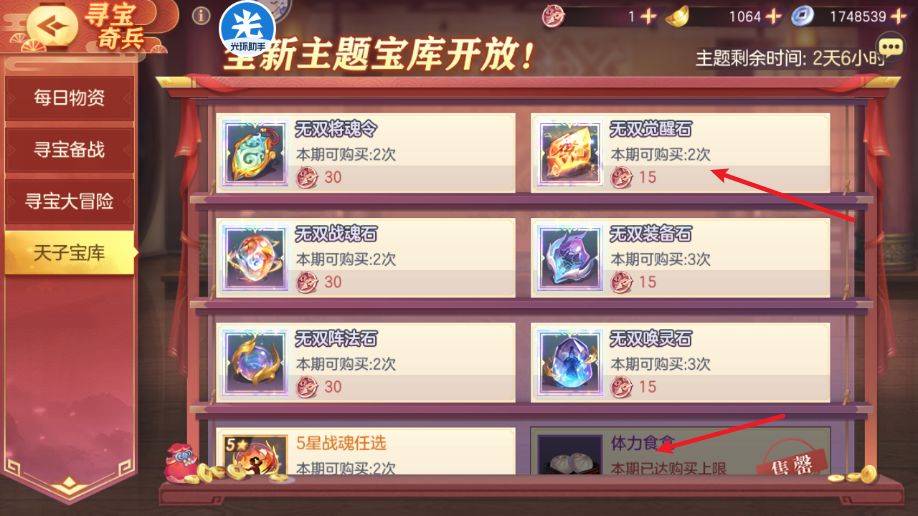 夺宝奇兵记得买完体力。