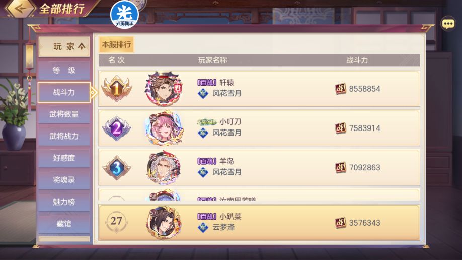 【本服战力排行】