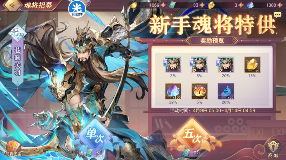 今天是最后一天新手集市了,没抽的记得抽。因为不保底,也可以留到后面的魂将活动再抽。50抽保底。