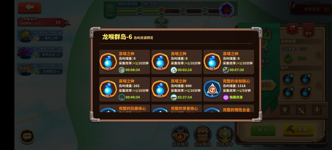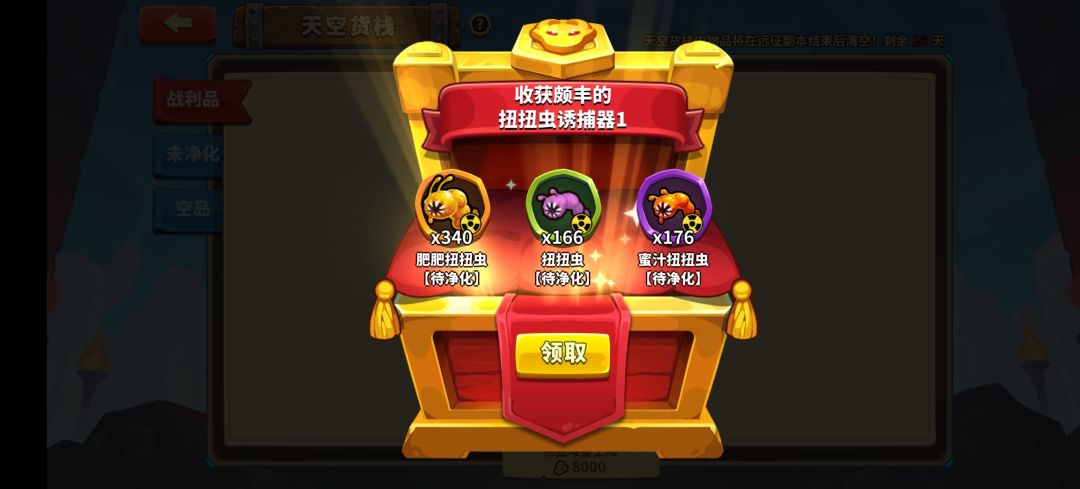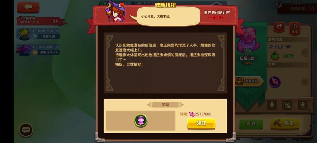首先每个阶段的开始,如果大佬们觉得自己实力不足的,其实每个岛都打一次,跟着牛逼的大佬们推图占领混个参与奖,没必要死磕第一名的奖励。然后把岛都推完了,就开始采集虫子,这个是加体力用的。