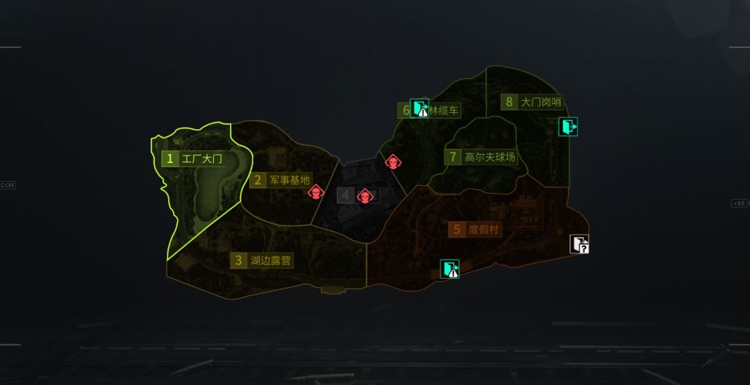 而在5、6、7、8号点位部署时,撤离点会在左侧生成,其中工厂大门撤离点为可用撤离点,不需要任何条件,中间撤离点为条件撤离点,撤离时不可装备防弹衣,下方撤离点为概率撤离点,有时候可撤离。