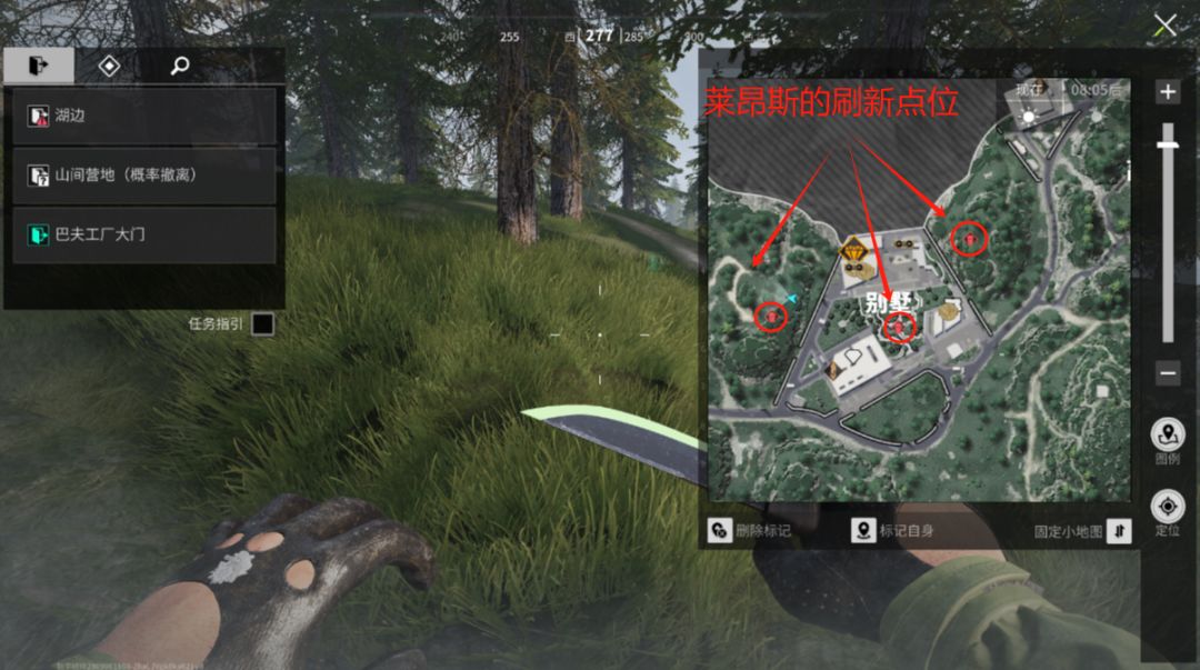 三:需要小心的点位1:首领和BOSS秋山会生成莱昂斯,别墅的左右两侧山顶会刷莱昂斯,中间庭院有时也会刷。此外,别墅一二楼都会刷猞猁、度假村也会刷猞猁,度假村附近还会刷首领。击败莱昂斯要记得去捡掉落物,莱昂斯身上会刷狙击枪、热成像,危险型激化针剂,稳定型激化针剂甚至自救针。