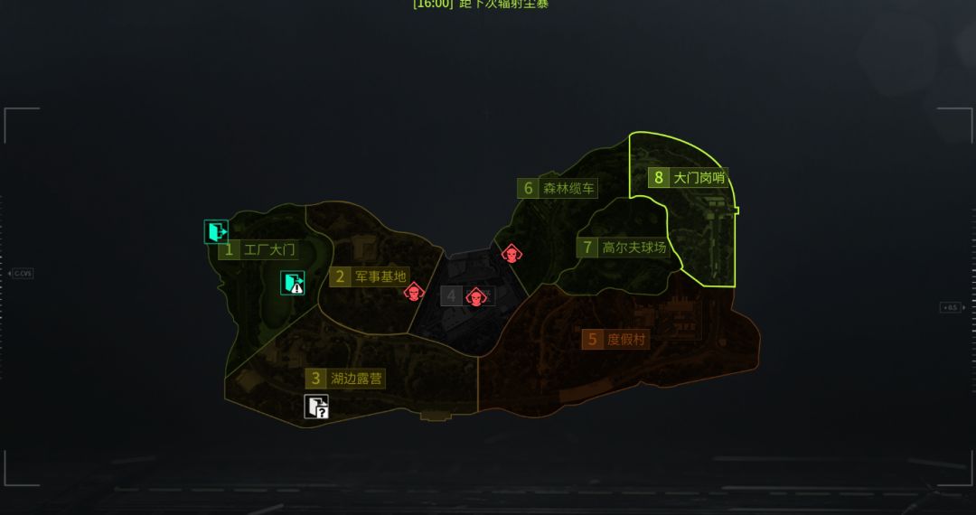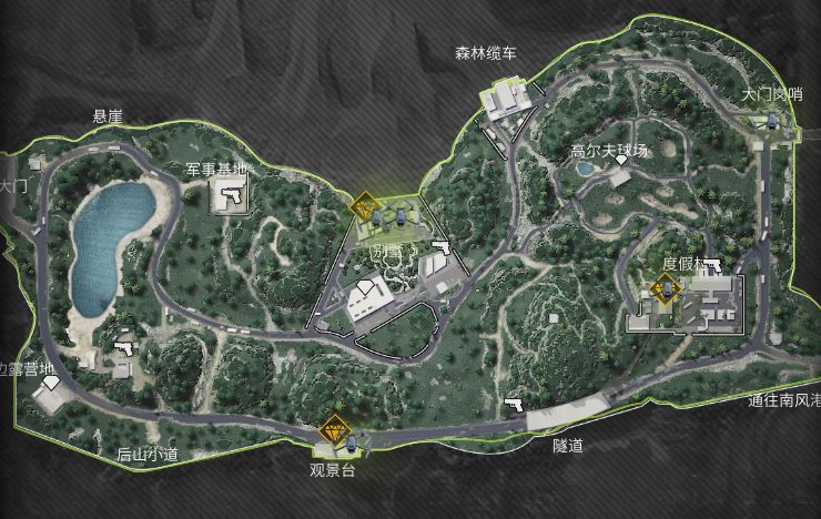 2:地图撤离点介绍秋山一共有七个撤离点,分别在地图的左右两侧,撤离点的生成方式和部署点位相关,当你在1、2、3号点位部署时,撤离点会生成在右侧。此时大门岗哨为可用撤离点,不需要审核条件,森林缆车撤离点为条件撤离点,需要一个缆车零件才可撤离,隧道也为条件撤离点,需要两个铭牌才可撤离。还有一个随机开放的通往南风港的路撤离点,有时候可用。