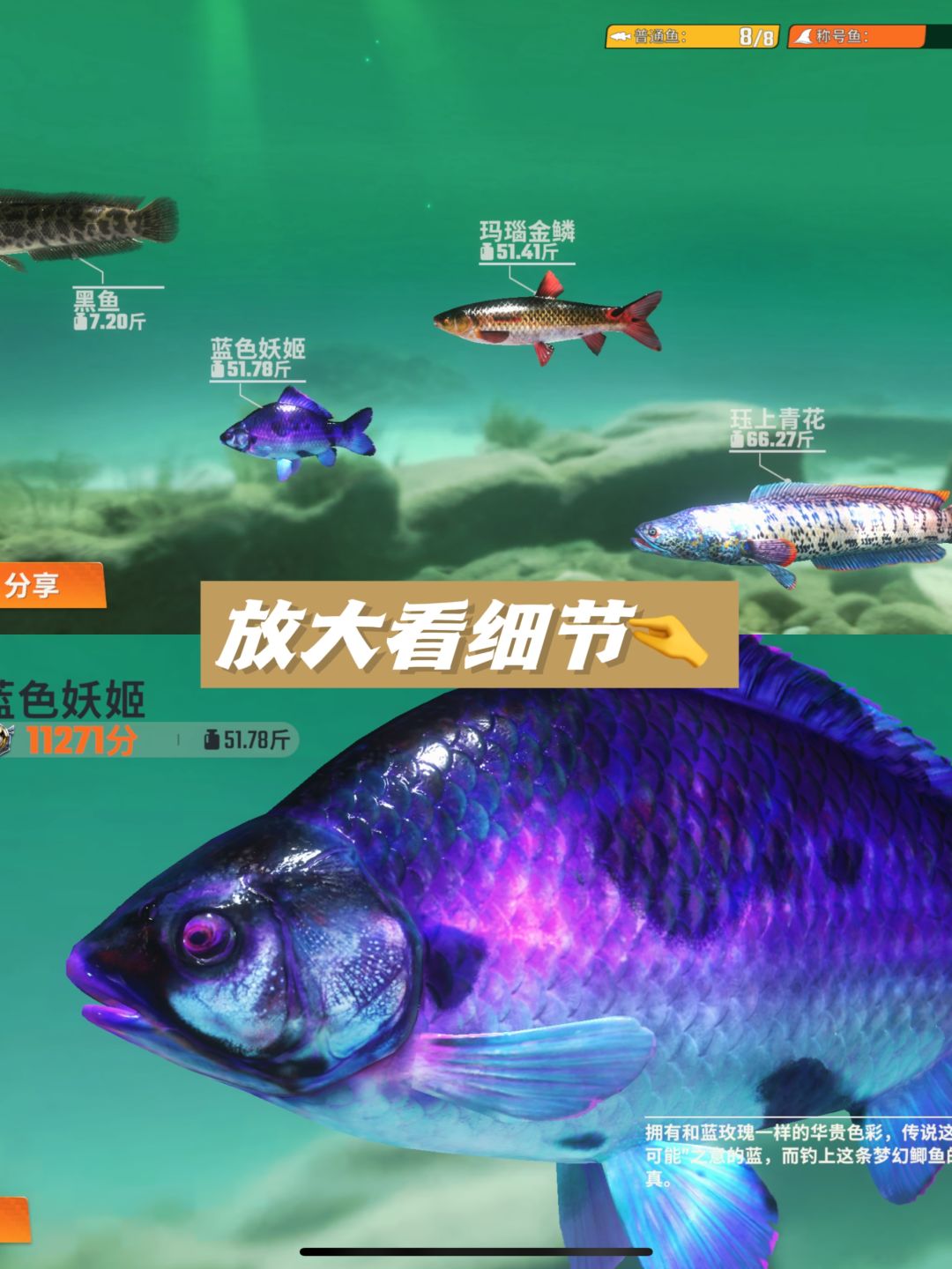 🐟200种水下生物,珍稀大鱼全服广播。