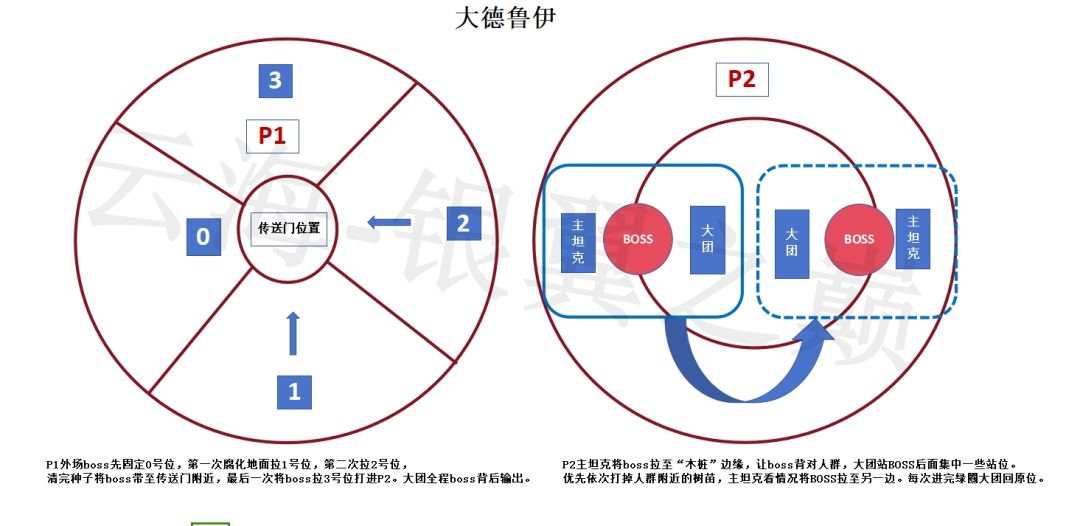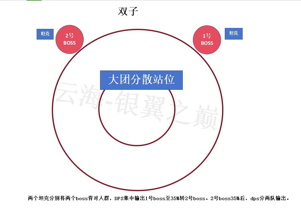 发现关于十人团本的攻略比较少,总结了一下通关经验,给大家画了几幅BOSS打法站位的图片,供大家参考。