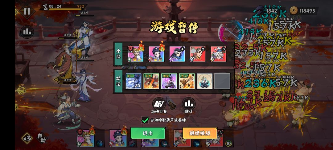 3.关于c位。之前呢,因为白灵儿星级高,带穿透,一直用她做c位。后来看了主播玩才发现手动的圆觉真香啊,蓄力后的伤害是真高。基本上是前一轮的杖子回到身边就下一轮手动攻击。