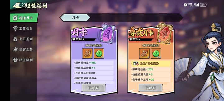 1.关于充值,我认为可以选择充值尊贵月卡,既有专属的福利,也能省去每天看很久广告的麻烦,性价比很高。