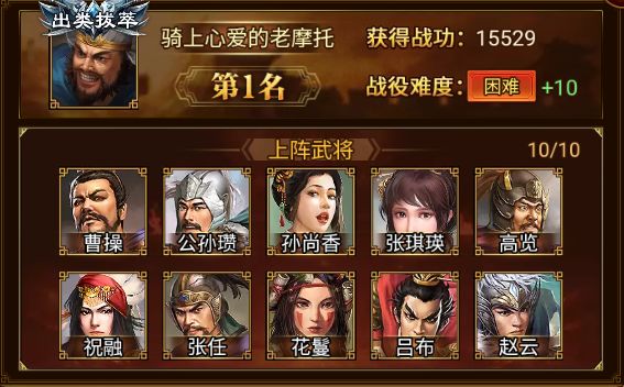 在本期下邳之战中荣登TOP10的勇士们依次是:骑上心爱的老摩托、骑上心爱的小摩托、^^明日