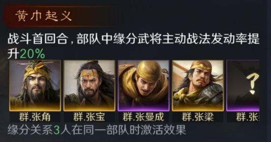 首回合能增加缘分武将的主动战法发动率。