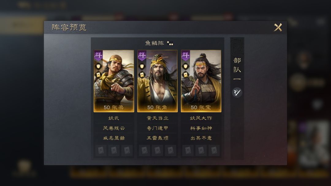 这个阵容能够激活“黄巾起义”缘分,三人的主动战法发动率在首回合能有大幅提升。张梁和张宝能够给敌军施加异常状态,配合张角打出高额的爆发伤害,在前几个回合内就能结束战斗。
