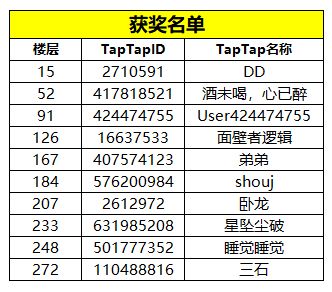 1:每个TapTap ID仅有一次获奖机会;