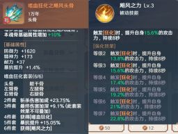 【嗜血狂化】进入战斗后,让自身获得狂化状态。狂化:造成暴击时,在自身周围半径3米范围内造成一次攻击力960%的伤害,触发间隔20秒【飓风之力】触发狂化时,提升自身12%的攻击力,持续8秒