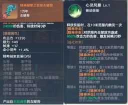 【心灵风暴】释放技能时,在10米范围内触发一次【精神冲击】:对范围内全部地方造成960%攻击力的伤害,触发间隔20秒【精神凝聚】触发后的8秒内,全队职业魂环技能冷却时间减少4%