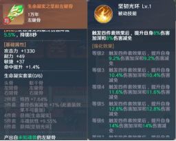 【生命凝实】受到伤害时,降低自身30%所受伤害,持续10秒,并反击目标自身生命值15%的伤害,,每30秒最多触发一次【坚韧光环】触发四件套效果后,提升自身8%伤害加深和8%伤害减免