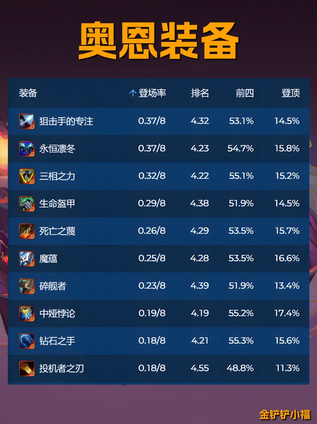 海克斯及奥恩、光明、辅助装备强度排行榜