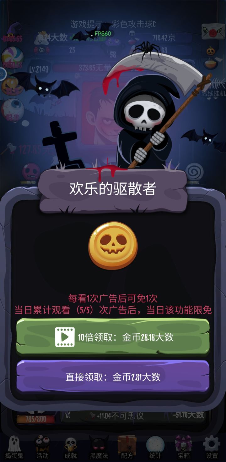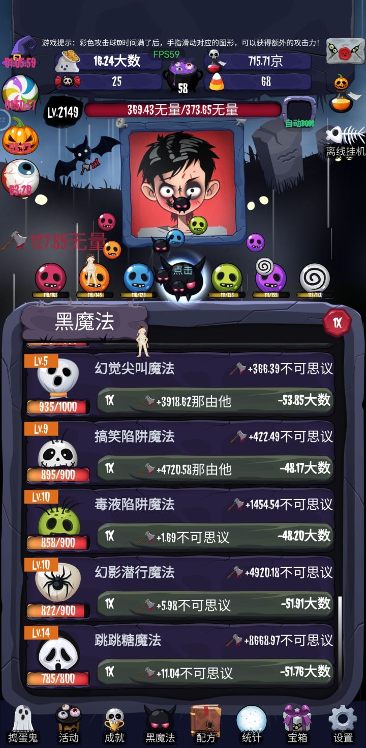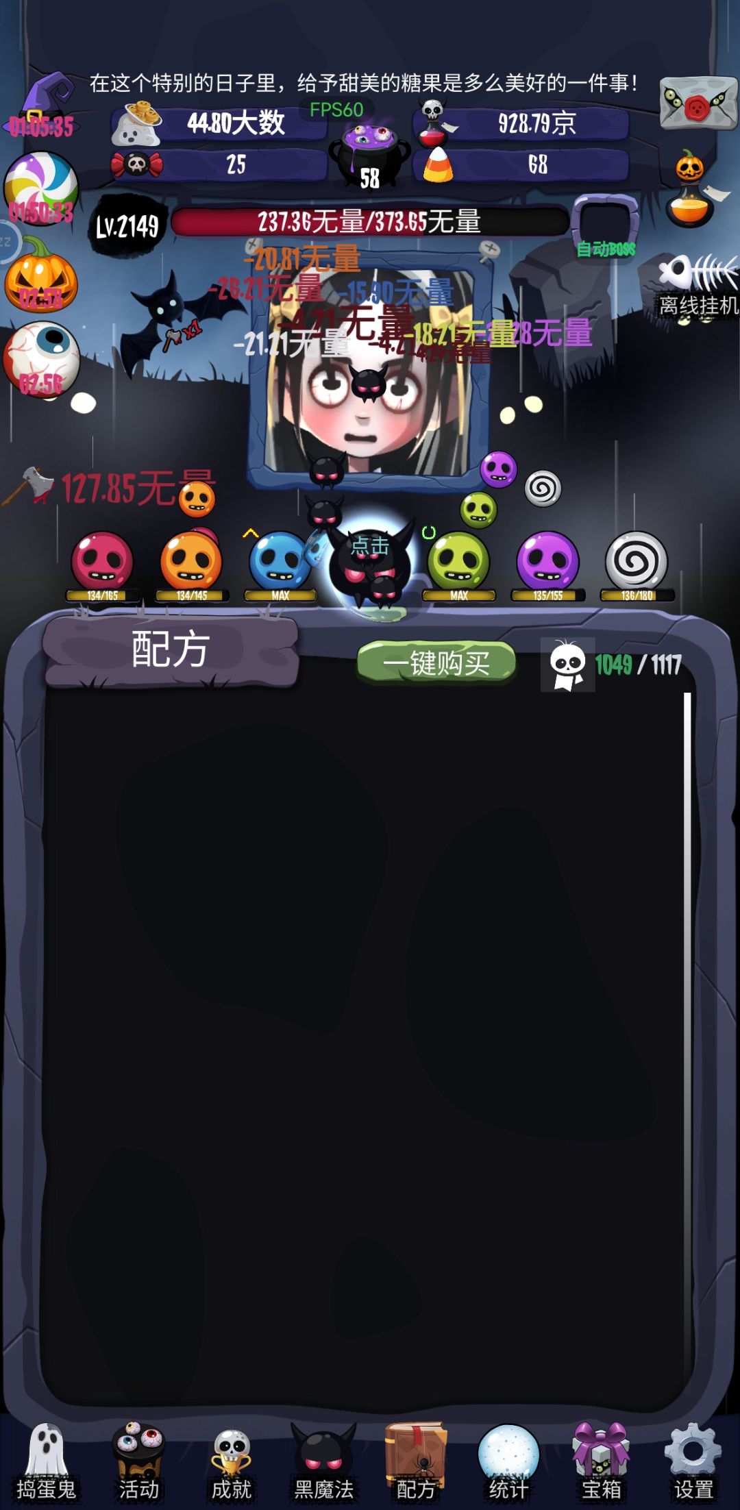 当我看到有转生系统直接过来看攻略,大家说的大同小异,一转累积150左右,二转2500,三转到三四万。我现在刚好三转,一转当时140多,二转3400,三转直接到10万+大家可以发现我除了一转,都比大多朋友们发的攻略多,有耗了更长时间的缘故,不过主要是二转多耗了些时间,差距最大的三转反而更少。经由我个人加点的经历感觉一转能到170多最好,我140+就是差二十多个买齐那几个便宜贴纸;二转到3350,我3400当时剩了七十多个没用完;一二转累积了这么多加成其实三转到10万就不是很难,我从二转开始逐渐感觉到人手点也才多过几个BOSS,自动推关推不下去就接近极限了,到三转手点好像才过了两三个就转生了。三转我剩了四千多没花掉,所以9万7差不多刚好可以用完不剩余,不过剩下的也不会消失大家放心。我是所有广告都看了的,大家不能接受这样可以根据我的经历适当减少转生门槛别太折磨自己。在这里再说一下累积的机制,不看大家推了多少关而是看大家得了多少钱,南瓜一定要点,五个广告后就今日免看所以不浪费大家太多时间。左上角推荐看,不想看也行就是进度慢点,女巫帽的那个金币加成可以影响到南瓜的金币获得量所以我个人都是要看的。说完获取资源那就要谈到资源利用,主要还是糖果乐园,一转啥也别管把价格最低的那几个先点了,二转一定要解锁派对,我的加点原则就是从便宜的买起尽量每次转生不剩点数,三转如果到了我这个程度那就是四位数的买就完了,刚过万的随便买,几万的看着来,反正少剩点数。