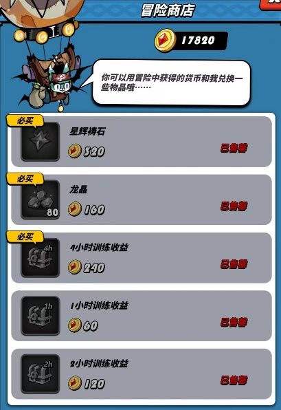 该商店只需要根据玩家在冒险体力有余时兑换龙神锻造锤