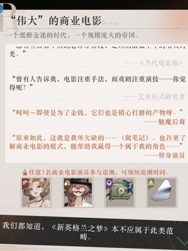 轶事改版后,追溯中派遣特别角色会有特殊留言,我是从后向前派遣的,刚刚看到第一段中的留言中,玛丽莲的真实身份竟然是“魅魔后裔”,翻看其文化单页,其实早已提及玛丽莲“怪物”外形的祖父母,新的种族浮现了