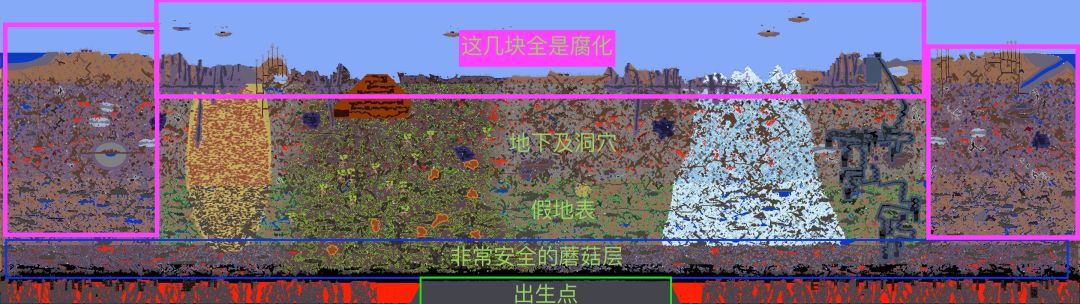 1.玩家会出生在地狱,出生点附近会有大量的灰烬木,而且环境相当安全,只会生成不爆岩浆的岩浆史莱姆,由于没有昼夜机制,在前期有大量时间探索(指砸罐子)。唯一对玩家的威胁就是血月,所以尽量在血月之前建好基地,我个人习惯在地表建安全刷怪房,往地下挖洞作npc监狱