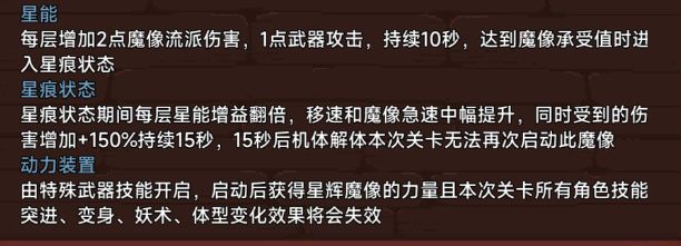 星痕状态描述是增益翻倍,实测进入星痕状态后所有星能清空,需要重新叠加星能,且叠加层数远不如未进入星痕状态之前,所以实测过载状态伤害大幅度减少,并没有增益。