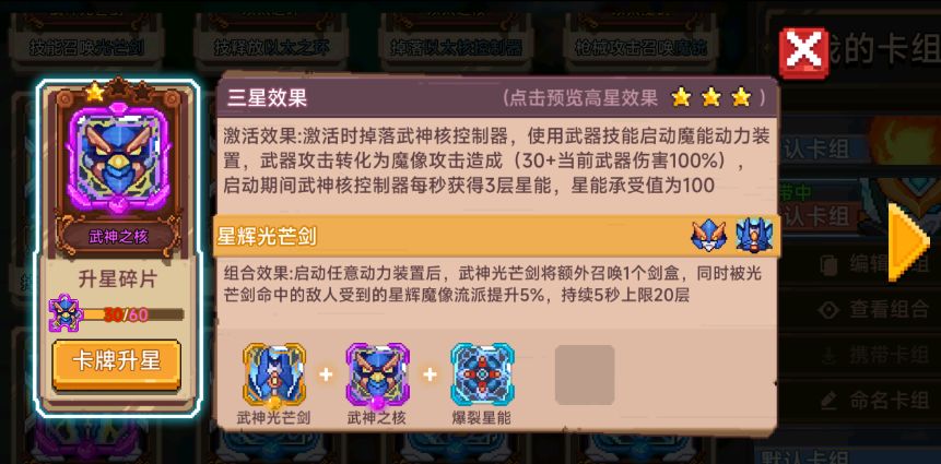 激活全部三张卡变身武神魔像——武神之核(紫卡)