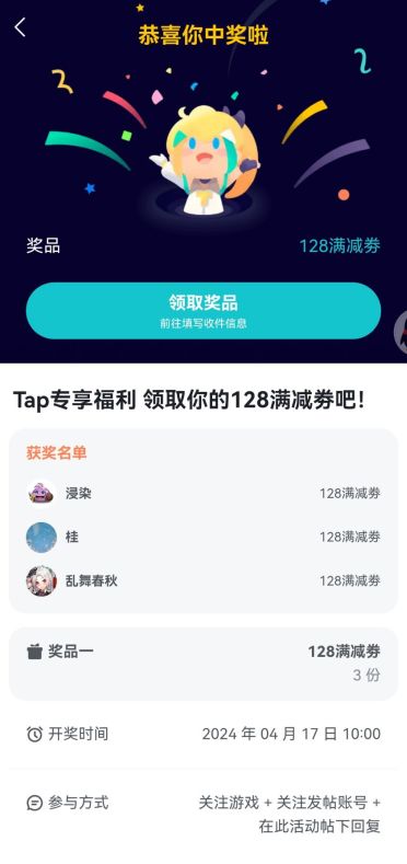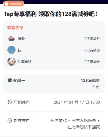 【Tap专享福利】参与“盖楼”得128满减劵!《已开奖》