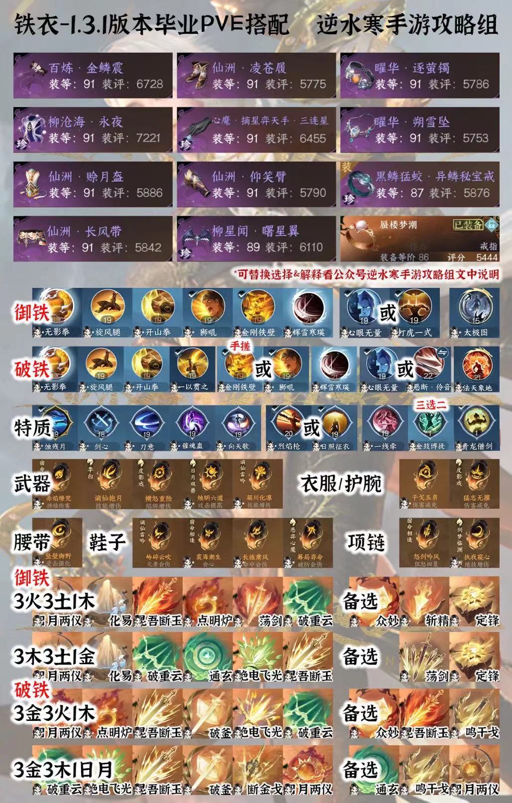 血河、铁衣1.3.1版本毕业PVE搭配