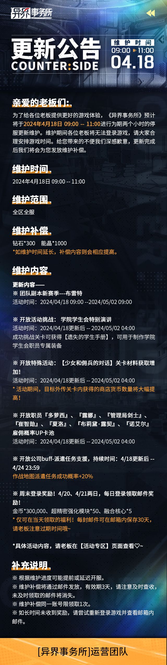 更新情报 | 多萝西、露娜等职员雇佣概率UP,团队副本新赛季