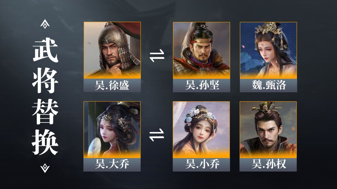 徐盛提供“抵御”来保障部队前几回合的生存能力,而大乔提供稳定的增伤能力,能够辅助孙尚香可以利用“连击”率多次爆发高额伤害。并且孙尚香在针对男性武将时,也会有额外的伤害加成。