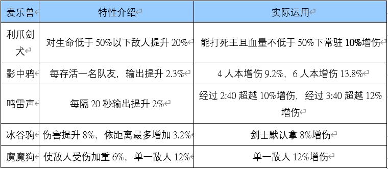 壹、麦乐兽觉醒技能比较