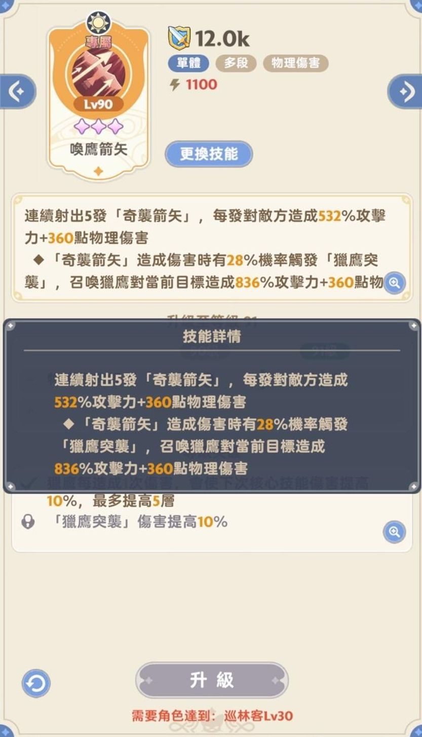 5发「奇袭箭矢」且「奇袭箭矢」有28%机率触发「猎鹰突袭」