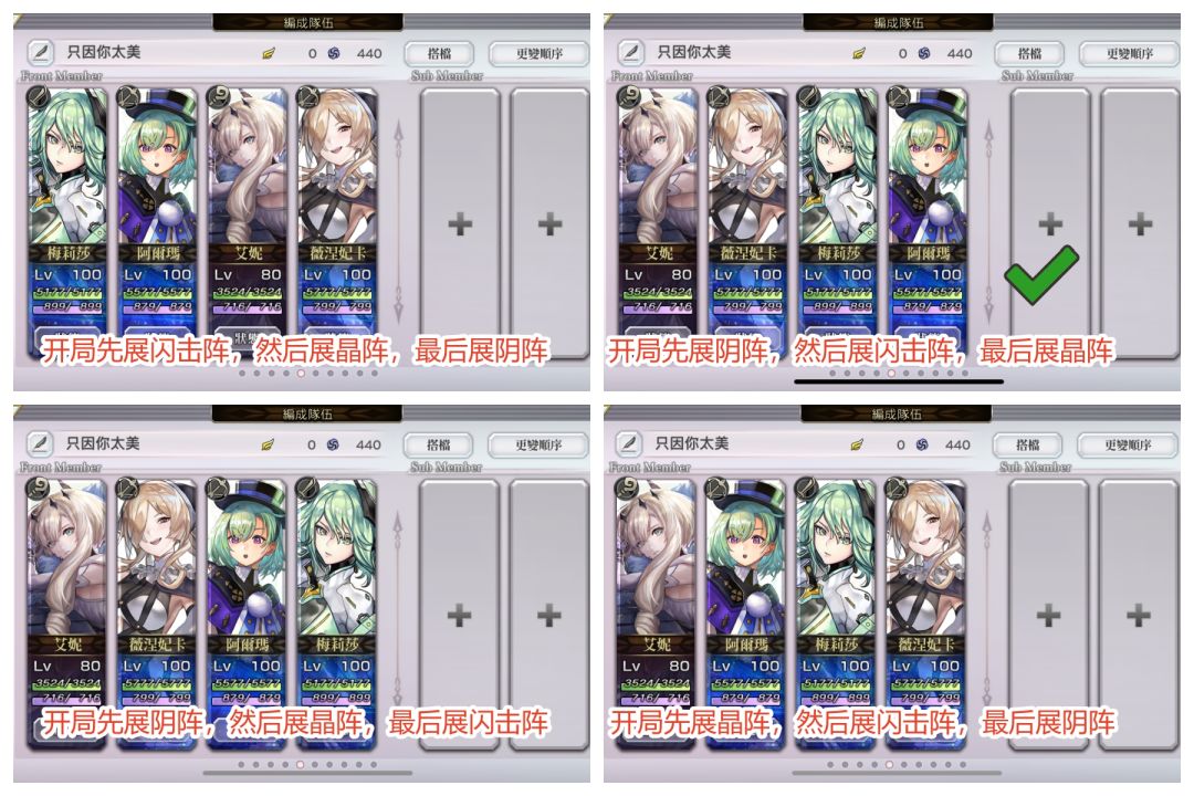 其余根据战斗需求,利用灵活位补充缺乏的区间即可,比如补物耐减益、补唱歌增伤、祈祷、异常免疫、防吹飞,补用于第三回合过度的防护等等
