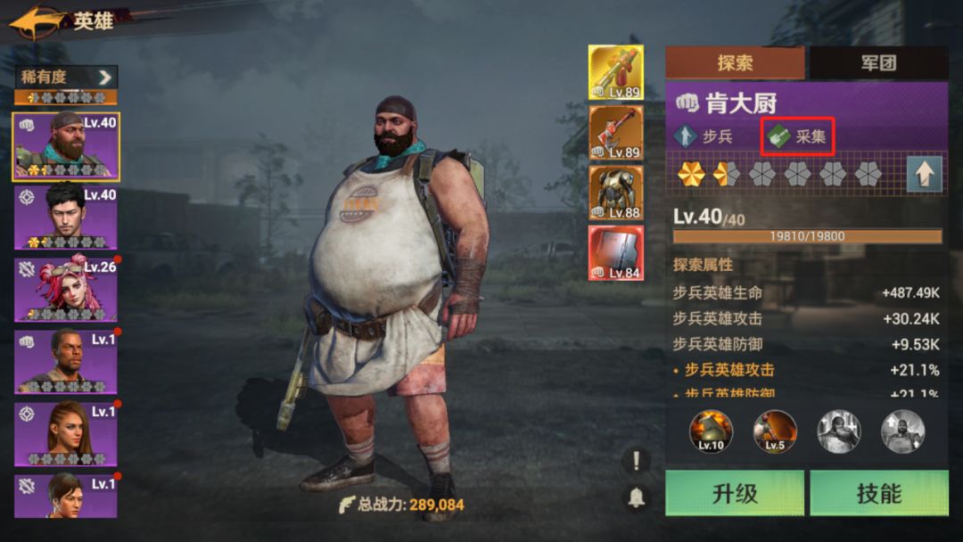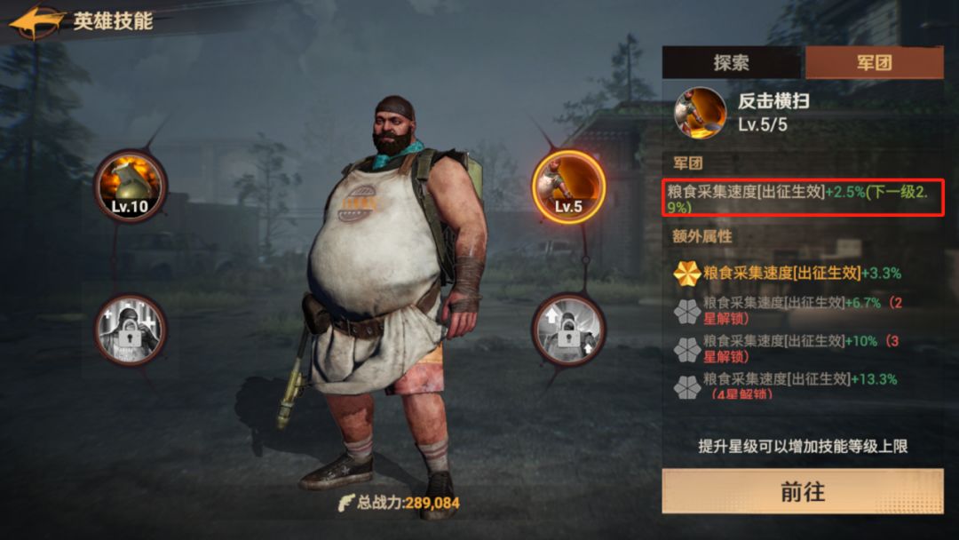 2、通用技能书前期不要着急用不管是蓝色、紫色还是橙色英雄,技能升级时统一需要消耗通用技能书。通用技能书的使用优先考虑主力队伍的技能,而在资源有盈余的情况下,可以考虑升级部分英雄的2、3技能。具体升级哪些2、3技能,需要我们切换到英雄技能的【军团】属性中查看,如肯大厨的2技能军团效果是提升粮食采集速度,这对于我们外出采集粮食非常有帮助,就可以适当升级提升对应功能的效率。