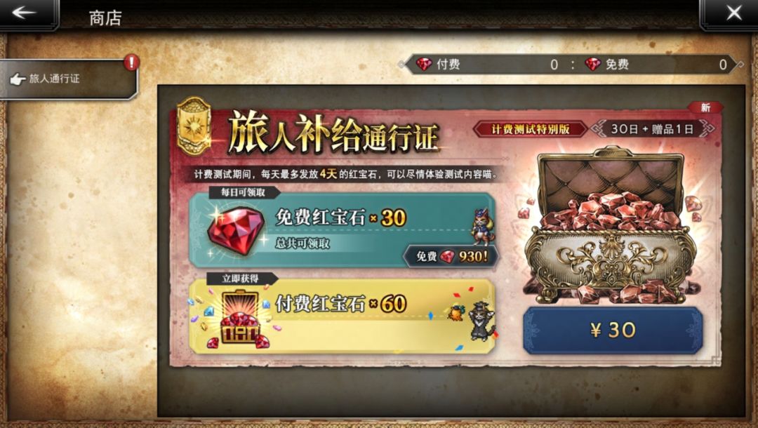 (2)计费测试期间,有任意充值即可解锁游戏中的“见习旅人的行李箱”,解锁资格可以在公测得到继承,即公测时将直接解锁相应奖励。