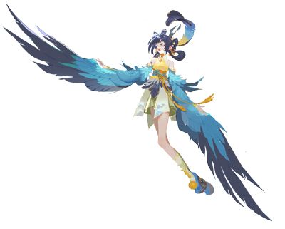 小曙始终在成长,所以希望我们的老朋友们也能与我们一同成长,以匹配现在更高的设计标准。我们简化了精卫的配色,仅保留了黄与蓝,让她在战场中成为更独树一帜的存在。而她的服饰则融入了更多国风元素与细节,通过组合羽毛、树枝、海浪等元素,将那个填海的小精卫呈现到大家面前~