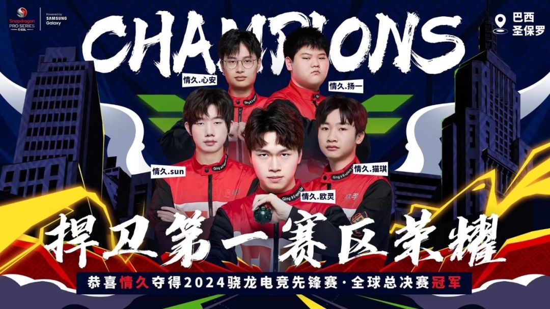 2024年4月14日凌晨,情久战队以4:0战胜了南美赛区一号种子Galorys,夺得2024骁龙电竞先锋赛·全球总决赛的冠军,让奇迹红在巴西圣保罗大放光彩,也捍卫了第一赛区的荣耀!