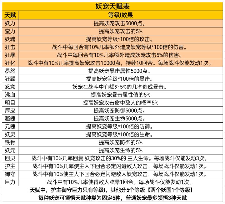 因2.0新开妖国地图四个,大神桃小林攻略好久没更新,为了更直观了解每个妖图妖宠具体属性整合此图,逐渐完善,感谢官群各位朋友的数据支持,妖宠天赋图来自桃小林大神,发现错误的部分可以发在评论区,我实时更新!(十区  姬芷)