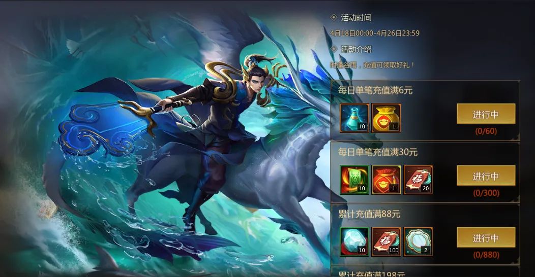 *核心奖励:百炼封神石、大量御宝琉璃自选礼包、冲锋战魂、自选三级镶嵌卡册、大量鱼钩、传说虎符精元、神之防具打造书页等。(详细奖励数量和种类见游戏内活动界面)