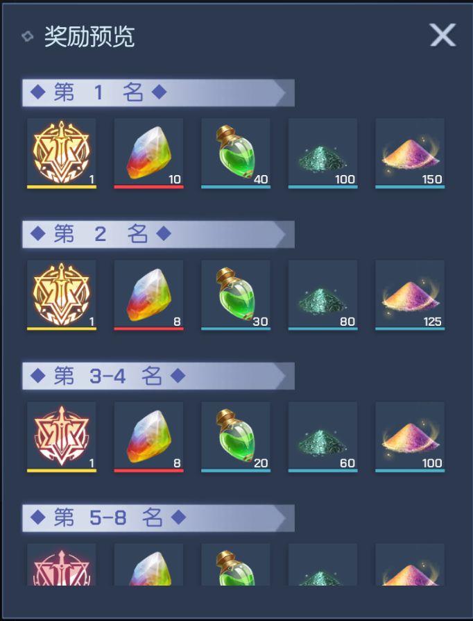 成功晋级到不同阶段可于赛程结束后(预计为4月21日12:00)获得不同奖励,包含限定称号、限定被动龙语、上古符咒断章、智慧初源、源光进化石、铜绿粉尘、时空之砂等,名次越高奖励越丰富!(奖励具体内容可于“活动”-“限时”-“巅峰之路晋级赛”-“奖励预览”进行查看)。