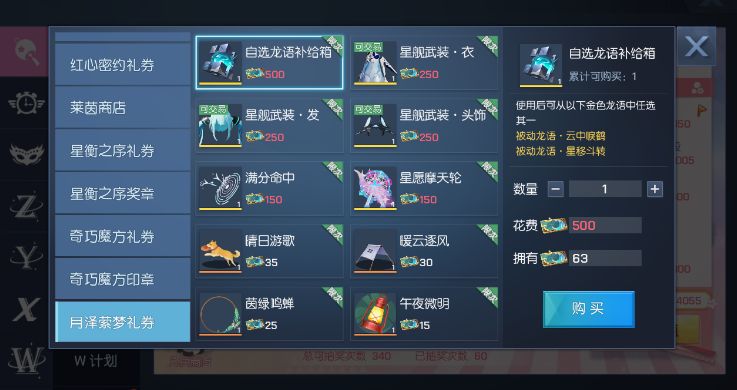 商区-促销区-星际商店中同时上架了高级半价卡礼包、精致半价卡礼包、超值半价卡礼包,根据在星际航线中的探星次数还可解锁购买星际航线茧化礼包、星际航线特权礼包,可获得超值龙之茧养成材料、龙纹养成材料和星脉信标,欢迎同学们选购!