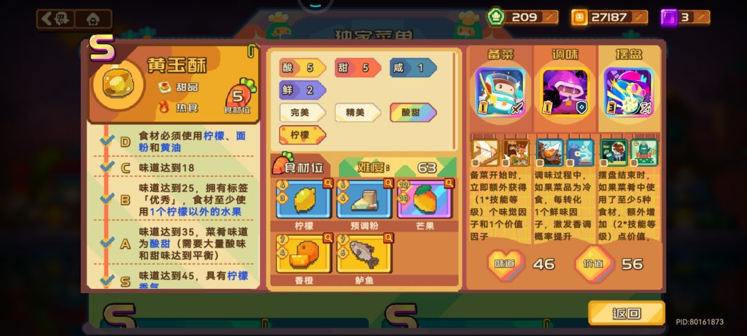 第二个黄玉酥, 讲真,真没必要追求s,同样五个位置,你看看炖菜 小炒肉 糖醋肉哪个不比这新菜强,我收回对这道菜的偏见,不得不说,刷❤️还得靠我黄玉酥,我这是卡着过的,梦魇十五,低一点味道方面应该能过的![[表情_举手]](https://img-tc.tapimg.com/market/images/f5a3260d8fbce51f2b52df672cd9be03.png)