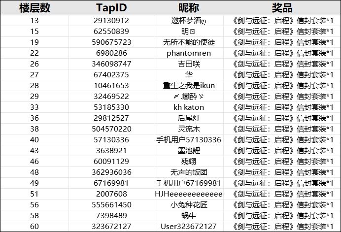 我们将在符合参与规则的大魔法师中抽取20名送出以下奖励!《剑与远征:启程》信封套装*1 (20名)
