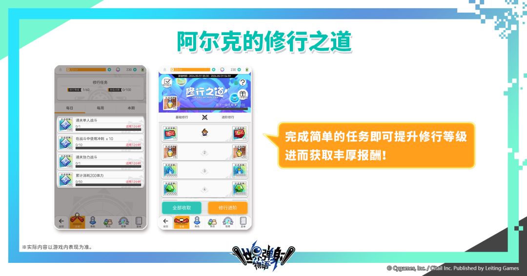 预计6-7月份,我们将上线战斗通行证功能「阿尔克的修行之道」,大家可以通过完成通行证中的每日任务、每周任务、当期任务,获得通行证经验、提升通行证等级。通行证等级提升后,冒险者可从中获得扭蛋券、崇高辉石、破星结晶等奖励。冒险者还可购买高级通行证解锁更多奖励。
