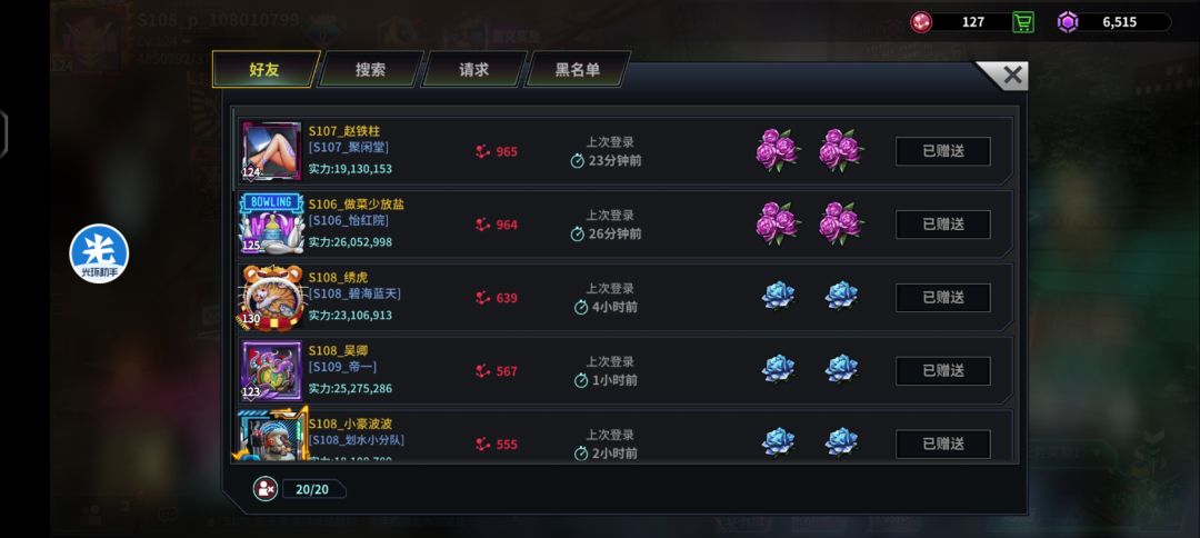 就是这个好友送礼 每天找两个经常在线送紫花 这样商店里面的资源每天都能拿满