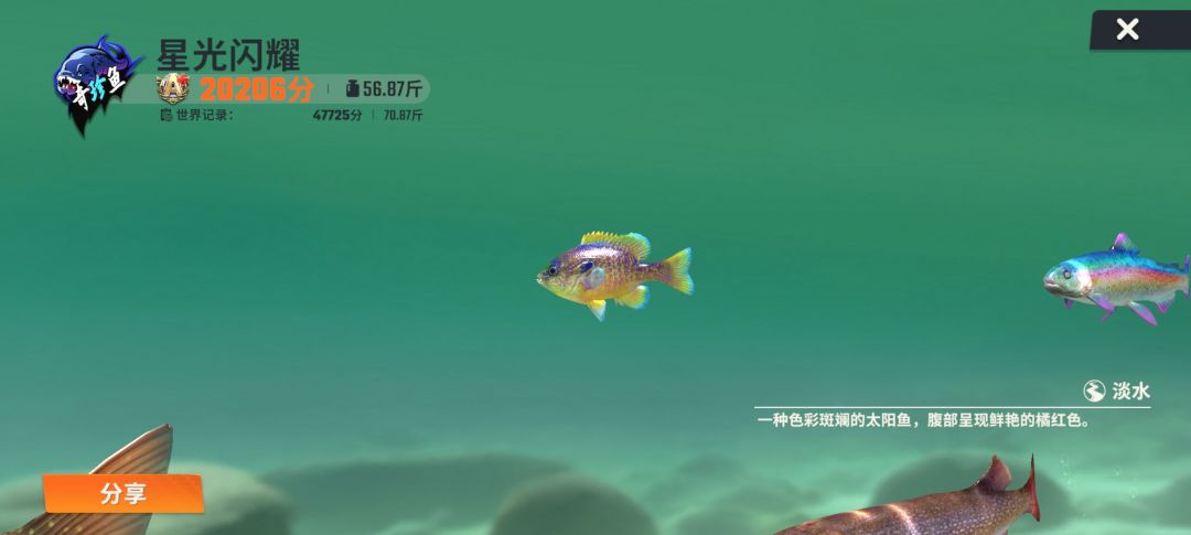 (一般称号鱼都是晃一下的小鱼刺鱼条,而且最佳刺鱼后阈值会剩下3/4左右,比较凶猛的称号鱼会出现鱼吃鱼吃鱼,根据杆战力而看,超过的话一般都是小鱼,或者是称号鱼以下的大鱼去吃小鱼,不是称号鱼)