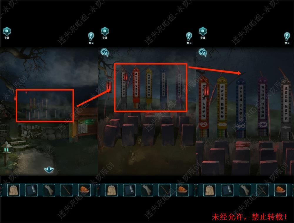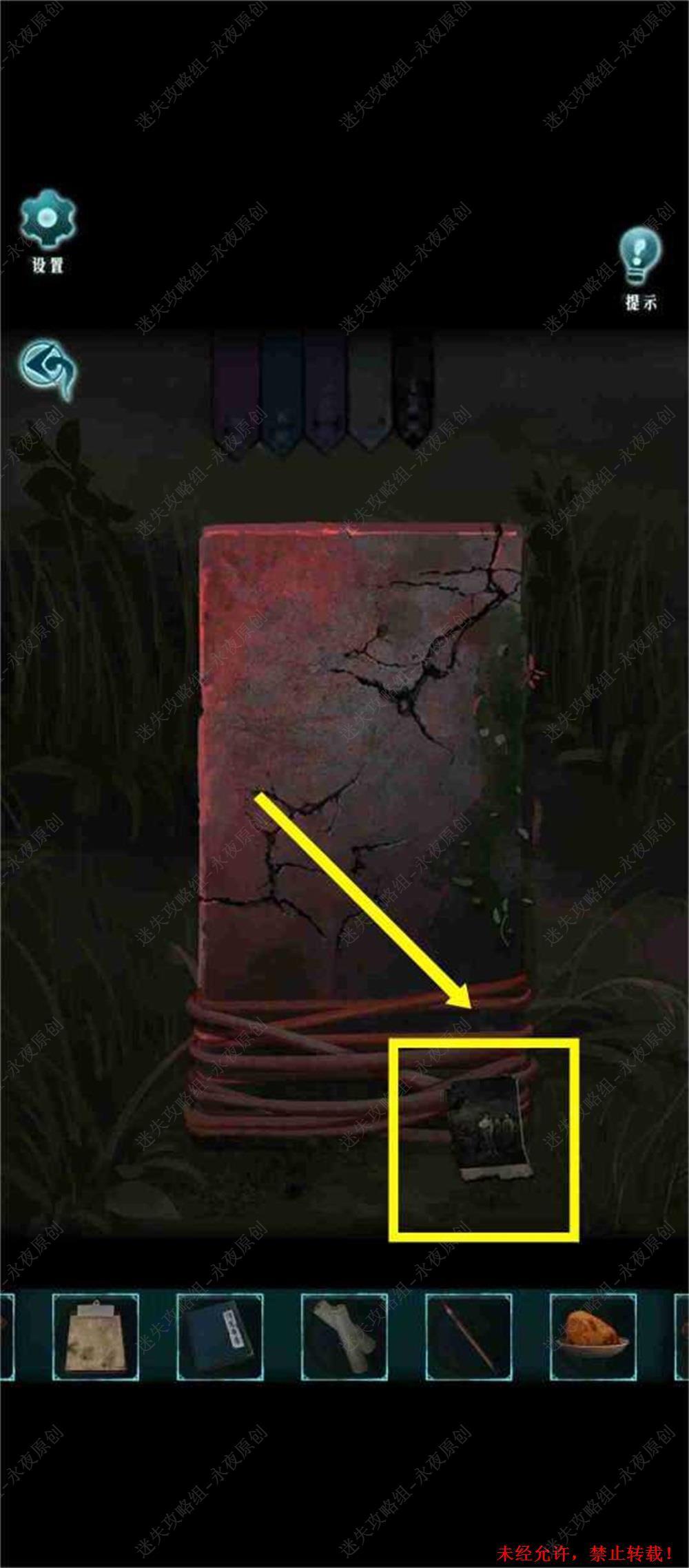 73.在下图场景点击使用【破洞照片】,根据女主角的手部靠着的位置找到正确的墓碑,即第二列,左数第二个。73