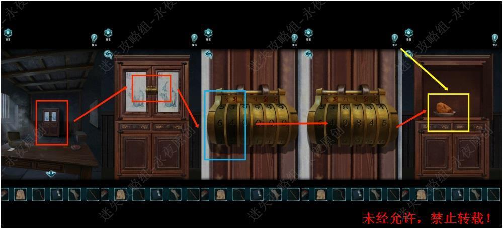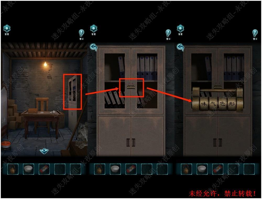 54.调查此处,在文件柜挂锁中,根据上述步骤得到的密码,输入“味气色形”,解锁文件柜。54
