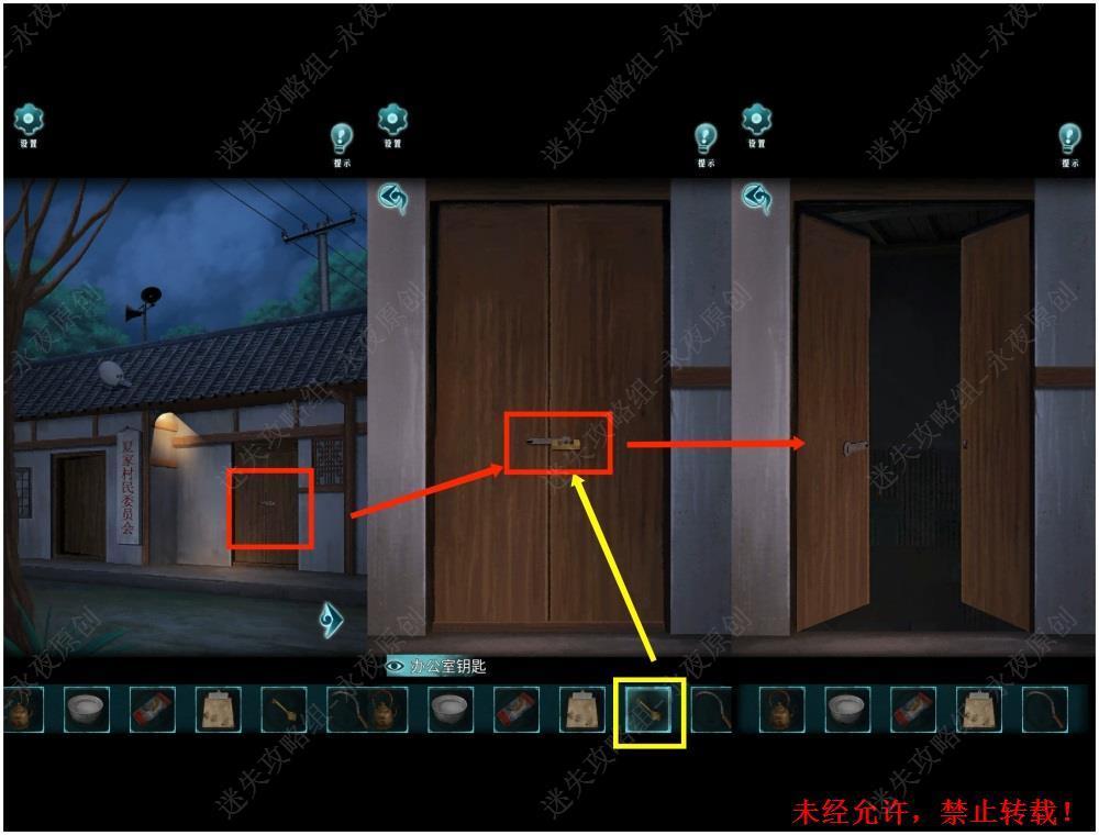 57.退出左侧办公室,进入夏家村民委员会场景,调查此处,对右侧办公室使用【办公室钥匙】,解锁右侧办公室。57