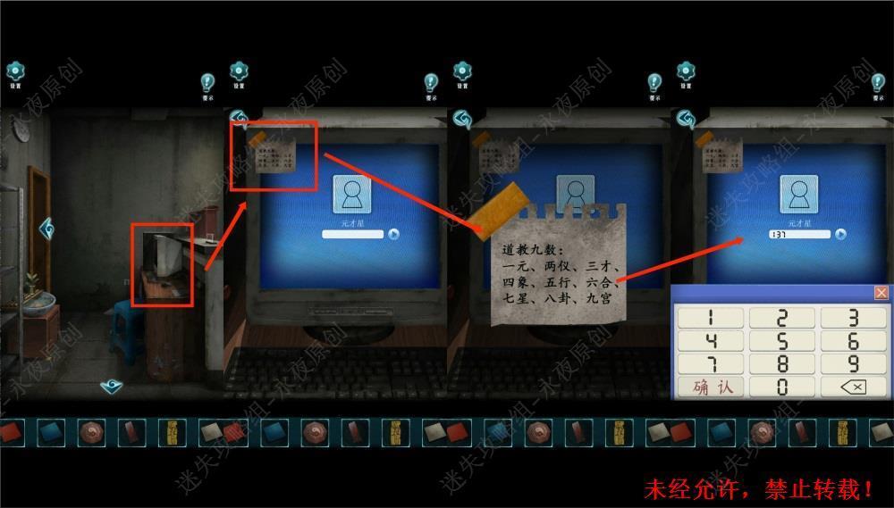 147.调查吧台电脑,根据名字和左上角的纸条,可得知密码是1(元)3(才)7(星)。输入137,打开电脑。147