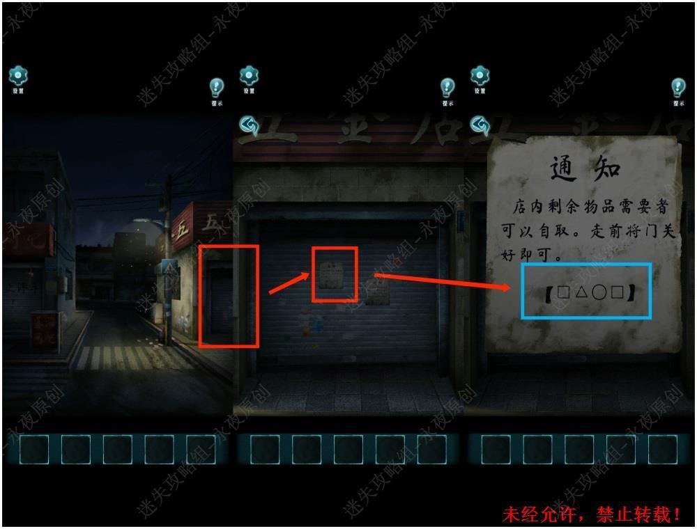 120.调查五金店门口通知,可得到图案密码“方块,三角形,圆形,方块”120
